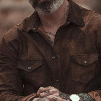 Men's Vintage Casual Suede Lapel Long Sleeve Shirt 31793631TO
