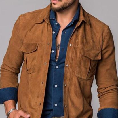 Men's Vintage Suede Double Breast Pocket Lapel Overshirt 49857209Y